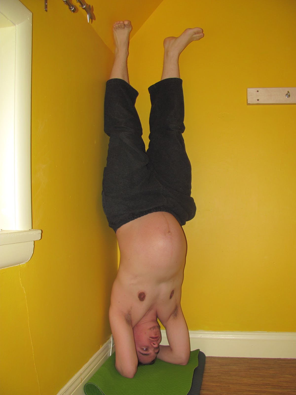 A few years later, in my second trimester of pregnancy, my back and hips started to ache. I didn't go to yoga because this time I really didn't believe there was any way I could stomach being seen in my unusual (for a man, anyway) state by the other students who ranged from friends and acquaintances to complete strangers. Ian mentioned my shyness to Drew, who immediately came up with a plan to teach me one on one. In the months that followed we worked together once a week right up until Jacob was born.